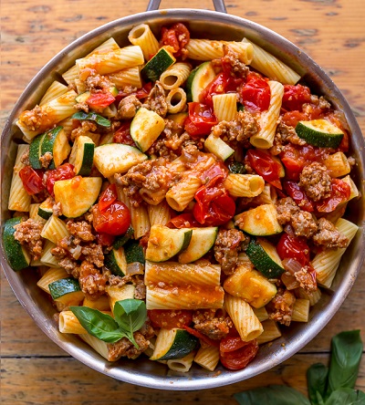 Recipe Kit: Rigatoni with Sausage, Tomatoes, and Squash (4 servings)